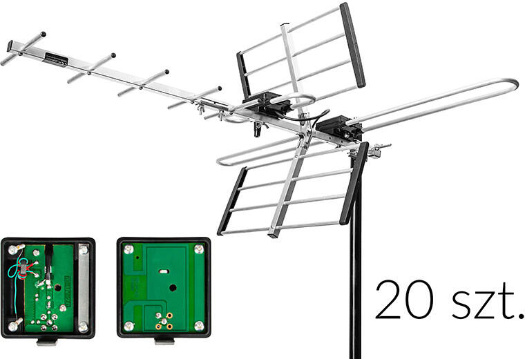 20 darabos csomag! 11-14dB erősítésű DVB-T irányított antenna, amely támogatja a FullHD és 4K UltraHD szabványokat, kültéri telepítésre tervezve. Lehetővé teszi a VHF+UHF sáv, a digitális földfelszíni TV jelek DVB-T / DVB-T2 digitális földfelszíni TV-jelek, MUX1, MUX2, MUX3, MUX4 és MUX8 csatornák vételét. Főbb jellemzők: